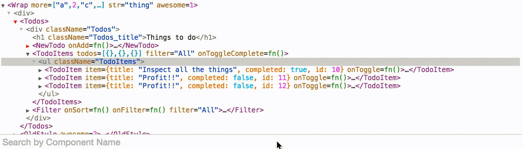 - Much richer view of your props, including the contents of objects and arrays